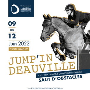 09 au 12 Juin Le Jump’in Deauville hisse les couleurs internationales Proposé en partenariat avec l’association Deauville Sports Equestres, le Jump’in Deauville ouvre traditionnellement la saison des concours internationaux de saut d’obstacles organisés au Pôle. Réunissant généralement une quinzaine de nations, l’événement regroupe trois niveaux de compétitions : un CSI1*, un CSI2* et, pour les cavaliers français amateurs, une étape du circuit fédéral baptisé « Amateurs Gold Tour FFE – Esthederm ».   Résultats en live ici.  Avant programme de la compétition.  Cavaliers JEUDI 09 JUIN   08h00: Ep 1 - Prix Les Vans Barbot & Grand Prix Mag CSI * -1.20m … Continued